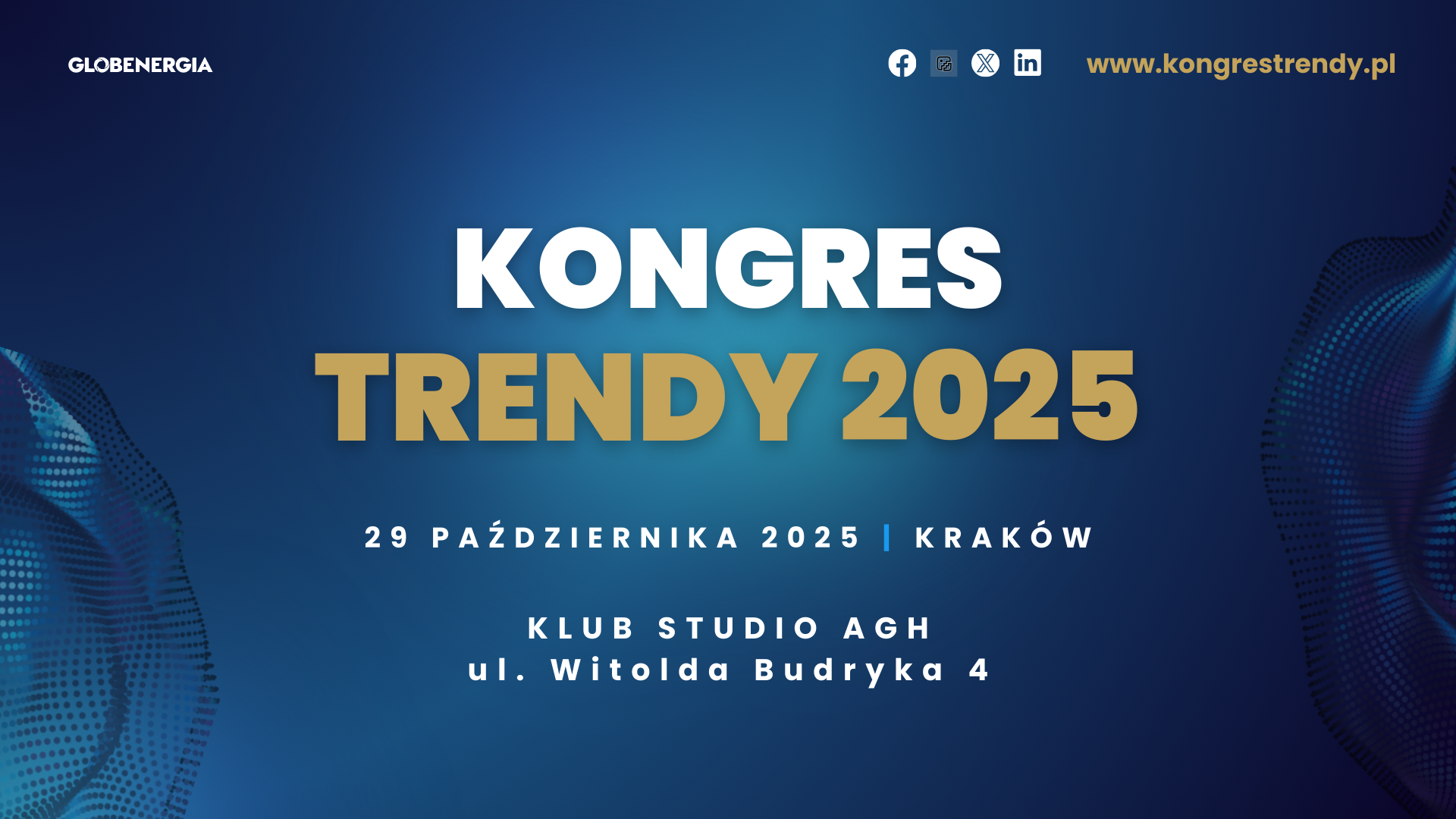Zapraszamy na Kongres TRENDY 2025, organizowany przez redakcję GLOBENERGIA przy współorganizacji Fundacji Instytut Trendów. Wydarzenie odbędzie się 29 października 2025 r. w Klubie Studio AGH w Krakowie.